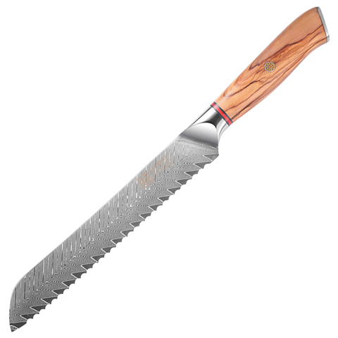 KEEMAKE 8-дюймовый нож для хлеба, 67-слойная Дамасская сталь с ручкой из оливкового дерева, двусторонний современный дизайн, экологичный кухонный нож