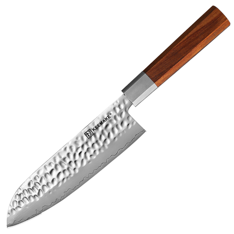 Высококачественный 7-дюймовый кухонный нож Santoku с ручкой из розового дерева, 3-слойное лезвие из высокоуглеродистой стали